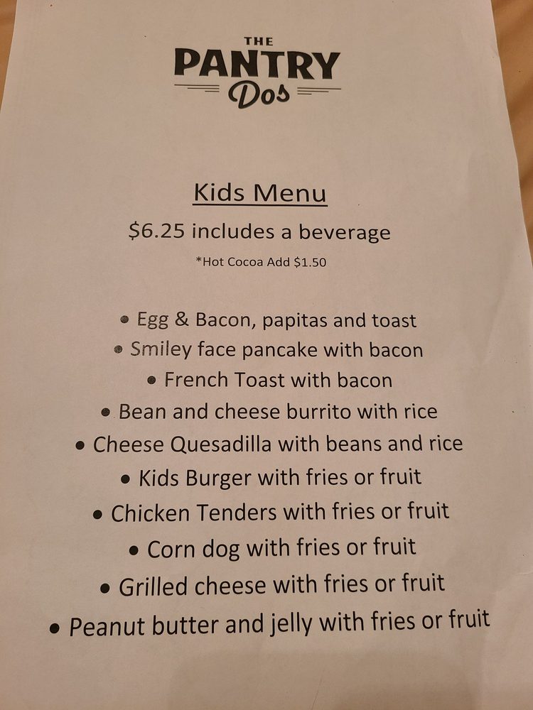 Introducing The Pantry Dos, a must-visit American restaurant in Santa Fe, NM, known for its diverse menu and casual ambiance. Offering takeout, delivery, and catering services, The Pantry Dos caters to a wide range of diners, including vegetarians and those with dietary preferences. With a full bar, happy hour specials, and a selection of traditional and griddle breakfast items, this spot is perfect for a hearty meal or a quick bite. Customer reviews rave about the consistency of the food and service, with favorites like the Breakfast Burrito, Avocado Toast, and flavorful red and green chile dishes. So whether you're craving pancakes, waffles, or a savory breakfast burrito, The Pantry Dos has something for everyone. Don't miss out on the mouthwatering specials and friendly atmosphere at this gem of a restaurant.